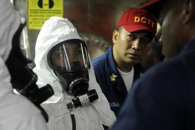 | Keywords: US Navy 091017-N-7280V-181 Damage control training team members train Information Systems Technician 3rd Class Jonetta McCoy, a flying squad team member, during a toxic gas drill aboard the amphibious command ship USS Blue Ridg.jpg en PACIFIC OCEAN Oct 17 2009 Damage control training team members train Information Systems Technician 3rd Class Jonetta McCoy a flying squad team member during a toxic gas drill aboard the amphibious command ship USS Blue Ridge LCC 19 Blue Ridge is the flagship for Commander U S 7th Fleet U S Navy photo by Mass Communication Specialist 3rd Class Daniel Viramontes/Released 2009-10-17 091017-N-7280V-181 Navy http //www navy mil/view_image asp id 77416 U S Navy photo by Mass Communication Specialist 3rd Class Daniel Viramontes PD-USGov-Military-Navy Aboard USS Blue Ridge LCC-19 |