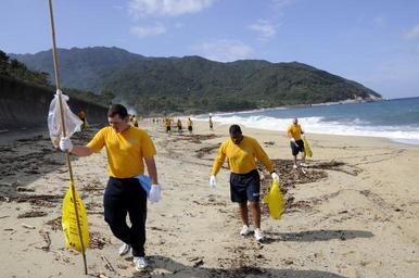 | Keywords: US Navy 091020-N-8335D-101 Sailors assigned to the mine countermeasures ship USS Defender (MCM 2) clean Nagata Maehama beach on the Japanese island of Yakushima.jpg en YAKUSHIMA Japan Oct 20 2009 Sailors assigned to the mine countermeasures ship USS Defender MCM 2 clean Nagata Maehama beach on the Japanese island of Yakushima during a community service project The beach is the most densely used spawning ground of the endangered Loggerhead turtle in the northern Pacific Ocean Defender is the first U S Navy ship to make a port call to Yakushima located about 225 miles south of the Japanese mainland U S Navy photo by Mass Communication Specialist 1st Class Richard Doolin/Released 2009-10-20 091020-N-8335D-101 Navy http //www navy mil/view_image asp id 77559 U S Navy photo by Mass Communication Specialist 1st Class Richard Doolin PD-USGov-Military-Navy Images from US Navy location YAKUSHIMA Japan Beach cleanup |