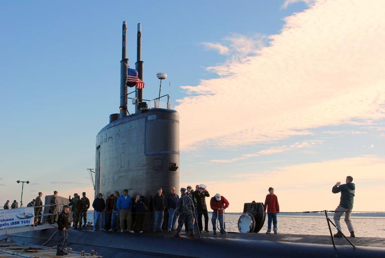 Keywords: US Navy 091025-N-8750E-072 Guests prepare to tour the Los Angeles-class attack submarine USS Annapolis (SSN 760).jpg en ANNAPOLIS Oct 25 2009 Guests prepare to tour the Los Angeles-class attack submarine USS Annapolis SSN 760 Annapolis was anchored in the Chesapeake Bay near the U S Naval Academy in Annapolis Md during the school's homecoming weekend U S Navy photo by Lt Patrick Evans/Released 2009-10-25 091025-N-8750E-072 Navy http //www navy mil/view_image asp id 77805 U S Navy photo by Lt Patrick Evans PD-USGov-Military-Navy United States Naval Academy USS Annapolis SSN-760 Submarine sails