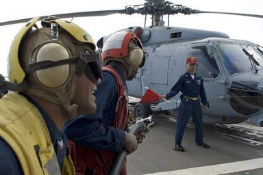 | Keywords: US Navy 091028-N-9123L-013 Boatswain's Mate 3rd Class Eddis Ramirez, from New York, calls instructions as Senior Chief Machinery Repairman Zoilo De Arce waves a flag indicating a class Bravo fire during a crash and smash traini.jpg en SOUTH CHINA SEA Oct 28 2009 Boatswain's Mate 3rd Class Eddis Ramirez from New York calls instructions as Senior Chief Machinery Repairman Zoilo De Arce waves a flag indicating a class Bravo fire during a crash and smash training exercise aboard the guided-missile destroyer USS McCampbell DDG 85 McCampbell is one of seven Arleigh Burke-class guided-missile destroyers assigned to Destroyer Squadron 15 and is permanently forward-deployed to Yokosuka Japan U S Navy photo by Mass Communication Specialist 2nd Class Byron C Linder/Released 2009-10-28 091028-N-9123L-013 Navy http //www navy mil/view_image asp id 77840 U S Navy photo by Mass Communication Specialist 2nd Class Byron C Linder PD-USGov-Military-Navy People with helicopters Photographs of red flags Aboard USS McCampbell DDG-85 |