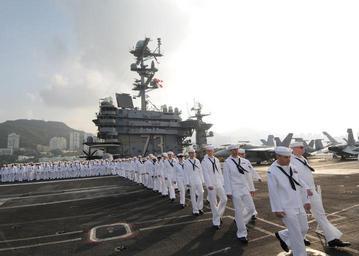 | Keywords: US Navy 091029-N-6567V-024 ailors march across the flight deck aboard the aircraft carrier USS George Washington (CVN 73) to man the rails as George Washington enters Kowloon Bay for a port visit to Hong Kong.jpg en HONG KONG Oct 29 2009 Sailors march across the flight deck aboard the aircraft carrier USS George Washington CVN 73 to man the rails as George Washington enters Kowloon Bay for a port visit to Hong Kong George Washington Sailors will conduct 12 different community service projects designed to give something back to their host city during their visit U S Navy photo by Mass Communication Specialist Seaman Apprentice Marcos Vazquez/Released 2009-10-29 091029-N-6567V-024 Navy http //www navy mil/view_image asp id 77841 U S Navy photo by Mass Communication Specialist Seaman Apprentice Marcos Vazquez PD-USGov-Military-Navy Images from US Navy location Hong Kong Aboard USS George Washington CVN-73 Manning the rail in the United States Navy |