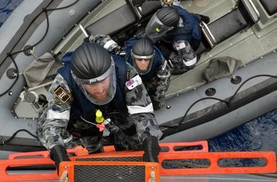 | Keywords: US Navy 091029-N-7095C-048 Members of an Australian boarding team disembark a rigid-hull inflatable boat and climb aboard the Military Sealift Command fleet replenishment oiler USNS Walter S. Diehl (T-AO 193) during a Deep Sabr.jpg en SOUTH CHINA SEA Oct 29 2009 Members of an Australian boarding team disembark a rigid-hull inflatable boat and climb aboard the Military Sealift Command fleet replenishment oiler USNS Walter S Diehl T-AO 193 during a Deep Sabre II training exercise Deep Sabre is a multi-national maritime interdiction exercise with units from Brunei Darussalam Canada France Japan New Zealand the Philippines the Republic of Korea Russia and Singapore as well as the U S and Australia The U S Navy and U S Coast Guard units are embarked aboard the guided-missile destroyer USS Fitzgerald DDG 62 U S Navy photo by Mass Communication Specialist 2nd Class Seth Clarke/Released 2009-10-29 091029-N-7095C-048 Navy http //www navy mil/view_image asp id 77907 U S Navy photo by Mass Communication Specialist 2nd Class Seth Clarke PD-USGov-Military-Navy Aboard USS Fitzgerald DDG-62 People of the Royal Australian Navy Royal Australian Navy Disruptive Pattern Naval Uniform |