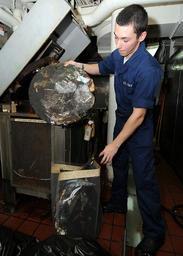 | Keywords: US Navy 091107-N-6233H-003 Hull Technician Fireman Ryan Konkol removes melted plastic from a compressed melting unit at the mid-ship pulper.jpg en PACIFIC OCEAN Nov 7 2009 Hull Technician Fireman Ryan Konkol removes melted plastic from a compressed melting unit at the mid-ship pulper aboard the aircraft carrier USS George Washington CVN 73 George Washington the Navy's only permanently forward-deployed aircraft carrier is underway supporting security and stability in the western Pacific Ocean U S Navy photo by Mass Communication Specialist Seaman Rachel N Hatch/Released 2009-11-07 091107-N-6233H-003 Navy http //www navy mil/view_image asp id 78321 U S Navy photo by Mass Communication Specialist Seaman Rachel N Hatch PD-USGov-Military-Navy Aboard USS George Washington CVN-73 |