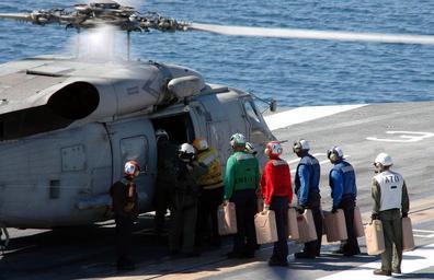 | Keywords: US Navy 100118-N-8822R-041 Sailors load water jugs onto an SH-60F Sea Hawk helicopter to be delivered to Haiti.jpg en PORT-AU-PRINCE Haiti Jan 18 2010 Sailors aboard the Nimitz-class aircraft carrier USS Carl Vinson CVN 70 load water jugs onto an SH-60F Sea Hawk helicopter to be delivered to those who were affected by the earthquake in Haiti Carl Vinson and Carrier Air Wing CVW 17 are conducting humanitarian and disaster relief operations as part of Operation Unified Response after a 7 0 magnitude earthquake caused severe damage near Port-au-Prince on Jan 12 2010 U S Navy photo by Mass Communication Specialist 3rd Class Antwjuan Richards-Jamison/Released 2010-01-18 100118-N-8822R-041 Navy http //www navy mil/view_image asp id 80185 U S Navy photo by Mass Communication Specialist 3rd Class Antwjuan Richards-Jamison PD-USGov-Military-Navy Aboard USS Carl Vinson CVN-70 SH-60F Oceanhawk |