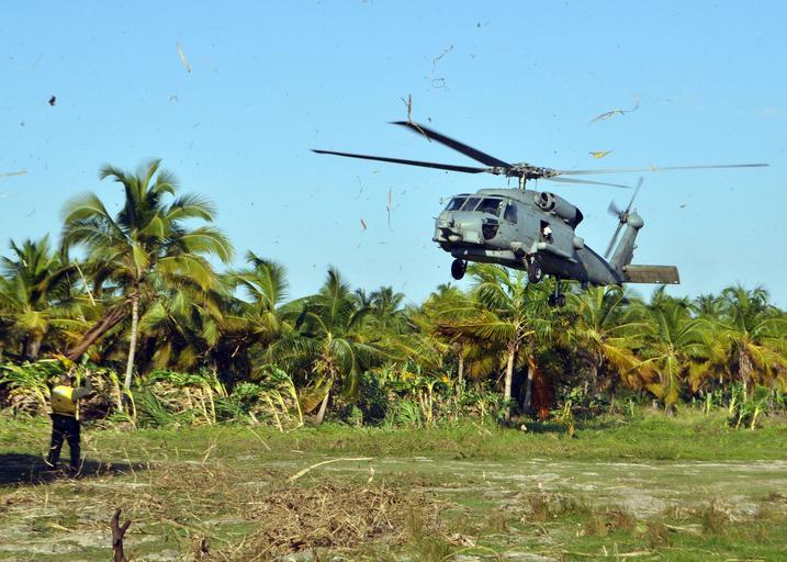 Keywords: US Navy 100123-N-4124C-005 An SH-60B Sea Hawk helicopter assigned to Screaming Seagulls of Helicopter Anti-submarine Squadron Light (HSL) 46,.jpg en PETIT TROU DE NIPPES Haiti Jan 23 2010 An SH-60B Sea Hawk helicopter assigned to Screaming Seagulls of Helicopter Anti-submarine Squadron Light HSL 46 embarked aboard the guided-missile cruiser USS Normandy CG 60 flies into a field at Petit Trou de Nippes to medivac an 11-year-old Haitian girl diagnosed with yellow fever Normandy is supporting Operation Unified Response the humanitarian assistance and disaster relief response to the earthquake in Haiti on Jan 12 2010 U S Navy photo by Ensign Adam R Cole/Released 2010-01-23 100123-N-4124C-005 Navy http //www navy mil/view_image asp id 80695 U S Navy photo by Ensign Adam R Cole PD-USGov-Military-Navy Aboard USS Normandy CG-60 SH-60B Seahawk