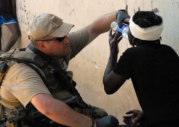 | Keywords: US Navy 100202-N-4971L-132 Sailor provides first aid to Haitian woman.jpg en BIREY Haiti Feb 2 2010 Chief Warrant Officer Jason Taggart from Wallsville Ohio provides first aid to a Haitian woman at a distribution point Fort McHenry is participating in Operation Unified Response as part of the Bataan Amphibious Relief Mission in Haiti following a 7 0 magnitude earthquake Jan 12 Official U S Navy photo by Mass Communication Specialist 1st Class Rachael L Leslie/Released 2010-02-02 100202-N-4971L-132 Navy http //www navy mil/view_image asp id 81473 U S Navy photo PD-USGov-Military-Navy Images from US Navy location BIREY Haiti First aid treatment |