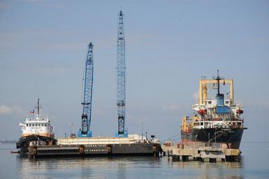 | Keywords: US Navy 100211-N-1134L-022 A barge is positioned in Haiti.jpg en PORT-AU-PRINCE Haiti Feb 11 2010 A tug operated by Crowley Maritime Corporation positions a barge in the main seaport of Port-au-Prince Haiti The cranes are used to remove debris from the harbor The Crowley Maritime Corporation is under contract with U S Transportation Command U S Navy photo by Mass Communication Specialist 2nd Class Chris Lussier/Released 2010-02-11 100211-N-1134L-022 Navy http //www navy mil/view_image asp id 81877 U S Navy photo by Mass Communication Specialist 2nd Class Chris Lussier PD-USGov-Military-Navy Images from US Navy location Port-au-Prince Haiti |