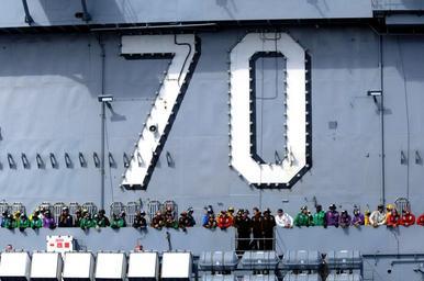 | Keywords: US Navy 100218-N-4275C-003 Flight deck personnel aboard SS Carl Vinson (CVN 70) observe USS Bunker Hill (CG 52) during a leapfrog positioning exercise.jpg en ATLANTIC OCEAN Feb 18 2010 Flight deck personnel aboard the Nimitz-class aircraft carrier USS Carl Vinson CVN 70 observe the approaching guided-missile cruiser USS Bunker Hill CG 52 during a leapfrog positioning exercise Carl Vinson and Bunker Hill are deployed as part of Operation Southern Seas 2010 U S Navy photo by Mass Communication Specialist 2nd Class Joel Carlson/Released 2010-02-18 100218-N-4275C-003 Navy http //www navy mil/view_image asp id 82083 U S Navy photo by Mass Communication Specialist 2nd Class Joel Carlson PD-USGov-Military-Navy Aboard USS Carl Vinson CVN-70 70 number Aboard USS Bunker Hill CG-52 |