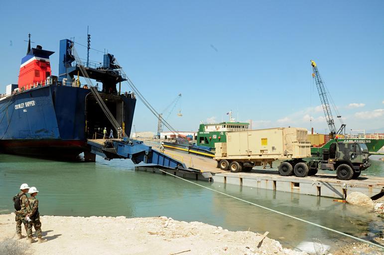 | Keywords: US Navy 100220-N-9643W-032 Service members conducting joint logistics over the shore operations at the main seaport in Port-au-Prince, Haiti off-load construction vehicles and equipment.jpg en PORT-AU-PRINCE Haiti Feb 20 2010 Service members conducting joint logistics over the shore operations at the main seaport in Port-au-Prince Haiti off-load construction vehicles and equipment assigned to the U S Army 7th Sustainment Brigade from the British-flagged Crowley Shipper Several U S and international military and non-governmental agencies are conducting humanitarian and disaster relief operations as part of Operation Unified Response after a 7 0-magnitude earthquake caused severe damage in and around Port-au-Prince Haiti Jan 12 U S Navy photo by Mass Communication Specialist 2nd Class Kim Williams/Released 2010-02-20 100220-N-9643W-032 Navy http //www navy mil/view_image asp id 82194 U S Navy photo by Mass Communication Specialist 2nd Class Kim Williams PD-USGov-Military-Navy Images from US Navy location Port-au-Prince Haiti Joint Logistics Over The Shore 2010 Haiti earthquake relief efforts in Port-au-Prince 20100220 Family of Medium Tactical Vehicles Crowley Shipper ship 1980 |