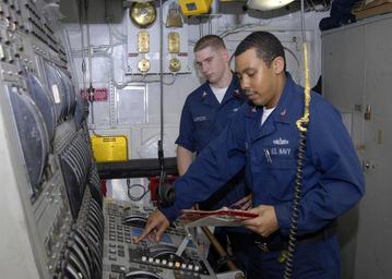 | Keywords: US Navy 100224-N-7638K-010 Engineman 1st Class Daniel Citizen from Lafayette, La., front, and Engineman 2nd Class David Larson, from Bigelow, Ark., prepare the main machinery room number 2 operating station for an operational t.jpg en CARIBBEAN SEA Feb 24 2010 Engineman 1st Class Daniel Citizen from Lafayette La front and Engineman 2nd Class David Larson from Bigelow Ark prepare the main machinery room number 2 operating station for an operational test of the ship's number 2 bravo diesel engine aboard the amphibious dock landing ship USS Fort McHenry LSD 43 Fort McHenry is participating in Operation Unified Response after a 7 0 magnitude earthquake caused severe damage in and around Port-a-Prince Haiti Jan 12 U S Navy photo by Mass Communications Specialist 1st Class Edward Kessler/Released 2010-02-24 100224-N-7638K-010 Navy http //www navy mil/view_image asp id 82399 U S Navy photo by Mass Communications Specialist 1st Class Edward Kessler PD-USGov-Military-Navy Aboard USS Fort McHenry LSD-43 |