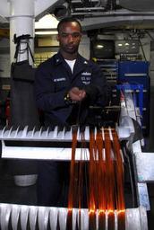 | Keywords: US Navy 100302-N-3327M-012 Electrician's Mate 3rd Class Tyreek Hayward winds copper wire for a ventilation motor during maintenance aboard the aircraft carrier USS Nimitz (CVN 68).jpg en SEA OF JAPAN March 2 2010 Electrician's Mate 3rd Class Tyreek Hayward winds copper wire for a ventilation motor during maintenance aboard the aircraft carrier USS Nimitz CVN 68 The Nimitz Carrier Strike Group is conducting operations in the U S 7th Fleet area of responsibility U S Navy photo by Mass Communication Specialist 3rd Class James Mitchell/Released 2010-03-02 100302-N-3327M-012 Navy http //www navy mil/view_image asp id 82655 U S Navy photo by Mass Communication Specialist 3rd Class James Mitchell PD-USGov-Military-Navy Aboard USS Nimitz CVN-68 Electrician's Mate |