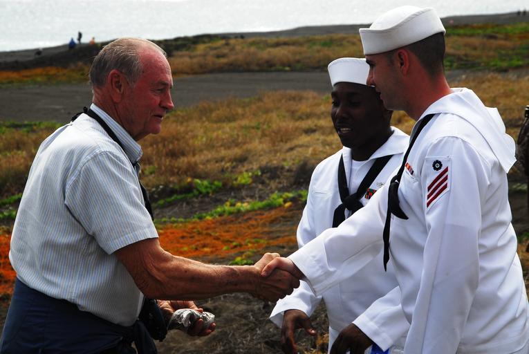 | Keywords: US Navy 100303-N-7843A-194 Sailors assigned to the amphibious dock landing ship USS Tortuga (LSD 49) talk with a veteran of the battle of Iwo Jima on the island of Iwo To, Japan.jpg en IWO TO Japan March 3 2010 Sailors assigned to the amphibious dock landing ship USS Tortuga LSD 49 talk with a veteran of the battle of Iwo Jima on the island of Iwo To Japan formerly known as Iwo Jima Military personnel and World War II veterans are commemorating the 65th anniversary of the Battle of Iwo Jima Tortuga arrived off the coast of Iwo To on Feb 28 to support the ceremony U S Navy photo by Lt Cmdr Denver Applehans/Released 2010-03-03 100303-N-7843A-194 Navy http //www navy mil/view_image asp id 82818 U S Navy photo by Lt Cmdr Denver Applehans PD-USGov-Military-Navy Aboard USS Tortuga LSD-46 Images from US Navy location Iwo Jima Japan |