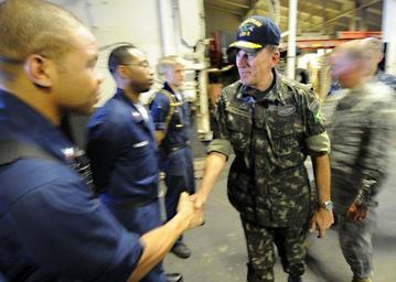 | Keywords: US Navy 100311-N-5961C-019 Brazilian army Maj. Gen. Floriano Peixoto Vieira Neto, right, force commander of the U.N. Stabilization Mission in Haiti, meets with Sailors aboard the amphibious assault ship USS Bataan (LHD 5).jpg en PORT-AU-PRINCE Haiti March 11 2010 Brazilian army Maj Gen Floriano Peixoto Vieira Neto right force commander of the U N Stabilization Mission in Haiti meets with Sailors aboard the amphibious assault ship USS Bataan LHD 5 Bataan is supporting Operation Unified Response after a 7 0 magnitude earthquake caused severe damage in and around Port-au-Prince Jan 12 U S Navy photo by Senior Chief Mass Communication Specialist Spike Call/Released 2010-03-11 100311-N-5961C-019 Navy http //www navy mil/view_image asp id 83109 U S Navy photo by Senior Chief Mass Communication Specialist Spike Call PD-USGov-Military-Navy Aboard USS Bataan LHD-5 Floriano Peixoto Vieira Neto |