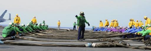 | Keywords: US Navy 100406-N-8913A-013 Aviation Boatswain's Mate (Equipment) 2nd Class Bennie L. Clark directs Sailors during a barricade drill.jpg en ATLANTIC OCEAN April 6 2010 Aviation Boatswain's Mate Equipment 2nd Class Bennie L Clark assigned to the air department aboard the aircraft carrier USS George H W Bush CVN 77 directs Sailors during a barricade drill George H W Bush is conducting training in the Atlantic Ocean U S Navy photo by Mass Communication Specialist Seaman Apprentice Leonard Adams/Released 2010-04-06 100406-N-8913A-013 Navy http //www navy mil/view_image asp id 84075 U S Navy photo by Mass Communication Specialist Seaman Apprentice Leonard Adams PD-USGov-Military-Navy Aboard USS George H W Bush CVN-77 Barricades aircraft carrier |