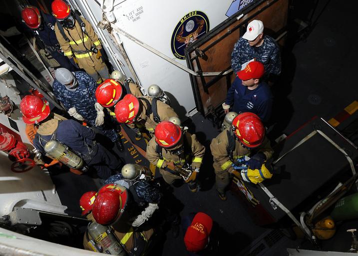 | Keywords: US Navy 100417-N-7948R-201 Sailors man a fire hose during a general quarters drill aboard the amphibious assault ship USS Peleliu (LHA 5).jpg en PACIFIC OCEAN April 17 2010 Sailors man a fire hose during a general quarters drill aboard the amphibious assault ship USS Peleliu LHA 5 Peleliu is conducting its certification exercise off the coast of Southern California in preparation for a deployment U S Navy photo by Mass Communication Specialist 2nd Class Michael Russell/Released 2010-04-17 100417-N-7948R-201 Navy http //www navy mil/view_image asp id 84479 U S Navy photo by Mass Communication Specialist 2nd Class Michael Russell PD-USGov-Military-Navy Aboard USS Peleliu LHA-5 |