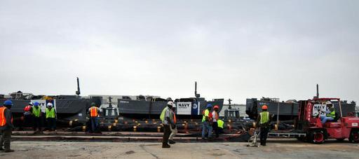 | Keywords: US Navy 100430-N-7367K-001 Longshoremen and personnel assigned to the Supervisor of Salvage and Diving division of Naval Sea Systems Command stage oil containment booms.jpg en GULFPORT Miss April 30 2010 Longshoremen and personnel assigned to the Supervisor of Salvage and Diving division of Naval Sea Systems Command stage oil containment booms The Supervisor of Salvage and Diving division has sent 66 000 feet of inflatable oil booms skimming systems related support equipment and personnel to support clean-up efforts for the Deepwater Horizon oil spill Deepwater Horizon was an ultra-deepwater oil rig that sank April 22 causing a massive oil spill threatening the U S Gulf Coast U S Navy photo by Mass Communication Specialist 1st Class Demetrius Kennon/Released 2010-04-30 100430-N-7367K-001 Navy http //www navy mil/view_image asp id 84878 U S Navy photo by Mass Communication Specialist 1st Class Demetrius Kennon PD-USGov-Military-Navy Images from US Navy location Gulfport Miss Deepwater Horizon oil spill Dockwork Dock workers |