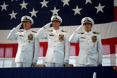 | Keywords: US Navy 100513-N-3436L-002 Rear Adm. Tim Alexander, left, commander of Navy Region Southeast, Capt. Jack Scorby Jr., commanding officer of Naval Air Station Jacksonville,.jpg en JACKSONVILLE Fla May 13 2010 Rear Adm Tim Alexander left commander of Navy Region Southeast Capt Jack Scorby Jr commanding officer of Naval Air Station Jacksonville and Capt Jeffrey Maclay executive officer of Naval Air Station Jacksonville salute during the playing of the national anthem during the Naval Air Station Jacksonville change of command ceremony During the ceremony Maclay relieved Scorby as commanding officer U S Navy photo by Kaylee LaRocque/Released 2010-05-13 100513-N-3436L-002 Navy http //www navy mil/view_image asp id 85452 U S Navy photo by Kaylee LaRocque PD-USGov-Military-Navy Admirals of the United States Navy Change of command Images from US Navy location Jacksonville Florida Jack Scorby Jr May 2010 in the United States Military people in 2010 Military people with a flag of the United States People of the United States in 2010 Rear Admirals Salutes Standing men 2010 in Florida 2010 photographs Naval officers of the United States 13 May |