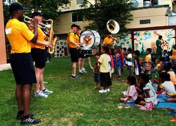 | Keywords: US Navy 100517-N-3446M-202 U.S. 7th Fleet Band ensemble, Orient Express, perform a concert as the children from the Fountain of Life Children's Center dance.jpg en PATTAYA Thailand May 17 2010 Members of the U S 7th Fleet Band ensemble Orient Express perform a concert as the children from the Fountain of Life Children's Center dance The band stopped at the school before heading onto their next gig for Cooperation Afloat Readiness and Training CARAT Thailand 2010 CARAT is a series of annual bilateral exercises in Southeast Asia to strengthen relationships and to enhance force readiness U S Navy photo by Mass Communication Specialist 1st Class Kim McLendon/Released 2010-05-17 100517-N-3446M-202 Navy http //www navy mil/view_image asp id 85619 U S Navy photo by Mass Communication Specialist 1st Class Kim McLendon PD-USGov-Military-Navy United States Navy in Pattaya Cooperation Afloat Readiness and Training 2010 |