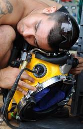 | Keywords: US Navy 100522-N-0413B-140 Navy Diver 3rd Class Wilson Cordoba, assigned to Mobile Diving and Salvage Unit (MDSU) 1, listens for air in a MK-3 dive helmet.jpg en QUYNH PHUONG Vietnam May 22 2010 Navy Diver 3rd Class Wilson Cordoba assigned to Mobile Diving and Salvage Unit MDSU 1 listens for air in a MK-3 dive helmet during pre-dive tests in a Joint POW/MIA Personnel Accounting Command JPAC recovery mission in Quynh Phuong Vietnam The mission of JPAC is to achieve the fullest possible accounting of all Americans missing as a result of the nation's past conflicts U S Navy photo by Mass Communication Specialist 1st Class Anderson Bomjardim/Released 2010-05-22 100522-N-0413B-140 Navy http //www navy mil/view_image asp id 85923 U S Navy photo by Mass Communication Specialist 1st Class Anderson Bomjardim PD-USGov-Military-Navy Images from US Navy location QUYNH PHUONG Vietnam United States Navy Divers Lightweight demand diving helmets Mobile Diving and Salvage Unit 1 |
