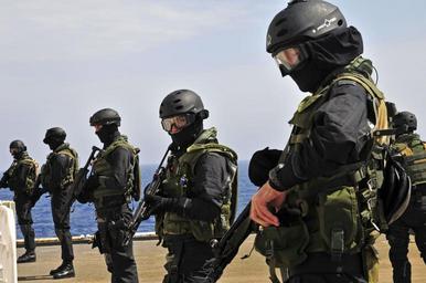 | Keywords: US Navy 100528-N-7364R-011 Italian navy visit, board, search and seizure team members secure the flight deck after fast-roping onto the Military Sealift Command container and roll-on-roll-off ship USNS LCPL Roy M. Wheat (T-AK 3.jpg en MEDITERRANEAN SEA May 28 2010 Italian navy visit board search and seizure team members secure the flight deck after fast-roping onto the Military Sealift Command container and roll-on/roll-off ship USNS LCPL Roy M Wheat T-AK 3016 during exercise Phoenix Express 2010 Phoenix Express is a two-week exercise designed to strengthen maritime partnerships and enhance stability in the region through increased interoperability and cooperation among partners from Africa Europe and the U S U S Navy photo by Mass Communication Specialist 2nd Class Felicito Rustique/Released 2010-05-28 100528-N-7364R-011 Navy http //www navy mil/view_image asp id 86303 U S Navy photo by Mass Communication Specialist 2nd Class Felicito Rustique PD-USGov-Military-Navy USNS LCpl Roy M Wheat T-AK-3016 HK MP5 COMSUBIN Phoenix Express 2010 |
