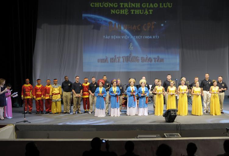 | Keywords: US Navy 100605-N-6410J-029 U.S. Pacific Fleet Band members and Vietnamese performing artists are introduced to audience members during a concert at the Quang Trung Hall.jpg en QUY NHON Vietnam June 5 2010 U S Pacific Fleet Band members and Vietnamese performing artists are introduced to audience members during a concert at the Quang Trung Hall supporting Pacific Partnership 2010 The Military Sealift Command hospital ship USNS Mercy T-AH 19 is in Vietnam conducting the fifth in a series of annual U S Pacific Fleet humanitarian and civic assistance endeavors to strengthen regional partnerships U S Navy photo by Mass Communication Specialist 3rd Class Matthew Jackson/Released 2010-06-05 100605-N-6410J-029 Navy http //www navy mil/view_image asp id 86587 U S Navy photo by Mass Communication Specialist 3rd Class Matthew Jackson PD-USGov-Military-Navy Aboard USNS Mercy T-AH-19 |