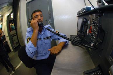 | Keywords: US Navy 100616-N-4482V-003 An Iraqi sailor passes information to the crew while training inside a full mission bridge trainer during a 90-day operations and maintenance training program in Morgan City, La.jpg en MORGAN CITY La June 16 2010 An Iraqi sailor passes information to the crew while training inside a full mission bridge trainer during a 90-day operations and maintenance training program in Morgan City La The Iraqi navy is preparing to receive their first 35-meter patrol boat in August 2010 The training is coordinated through Naval Education and Training Security Assistance Field Activity Naval Air Warfare Center Training Systems Division Naval Sea Systems Command and Swiftships Shipbuilding U S Navy photo by Steve Vanderwerff/Released 2010-06-16 100616-N-4482V-003 Navy http //www navy mil/view_image asp id 87439 U S Navy photo by Steve Vanderwerff PD-USGov-Military-Navy Naval Air Warfare Center Training Systems Division Morgan City Louisiana |