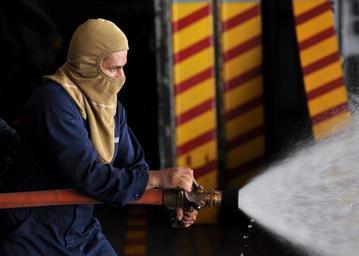 | Keywords: US Navy 100623-N-2013O-027 Aviation Structural Mechanic 3rd Class Edgar Rojasberrio, from Bogota, Colombia, uses a fire hose during a general quarters drill.jpg en PACIFIC OCEAN June 23 2010 Aviation Structural Mechanic 3rd Class Edgar Rojasberrio from Bogota Colombia uses a fire hose during a general quarters drill aboard the aircraft carrier USS George Washington CVN 73 George Washington the Navy's only permanently forward-deployed aircraft carrier is participating in Undersea Warfare Exercise USWEX an annual bilateral exercise involving the U S and the Japan Maritime Self-Defense Force U S Navy photo by Mass Communication Specialist 3rd Class Charles Oki/Released 2010-06-23 100623-N-2013O-027 Navy http //www navy mil/view_image asp id 87453 U S Navy photo by Mass Communication Specialist 3rd Class Charles Oki PD-USGov-Military-Navy Aboard USS George Washington CVN-73 Anti-flash gear |