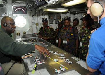 | Keywords: US Navy 100629-N-4236E-576 Sailors explain the Ouija board operation to distinguished visitors from East Africa and other coalition partner countries of U.S. Africa Command and Combined Joint Task Force, Horn of Africa.jpg en GULF OF ADEN June 29 2010 Sailors explain the Ouija board operation to distinguished visitors from East Africa and other coalition partner countries of U S Africa Command and Combined Joint Task Force Horn of Africa during a tour of flight deck control aboard the Nimitz-class aircraft carrier USS Dwight D Eisenhower CVN 69 The Eisenhower Carrier Strike Group is deployed as a part of an on-going rotation of forward-deployed forces to support maritime security operations in the U S 5th Fleet area of responsibility U S Navy photo by Mass Communication Specialist 3rd Class Chad R Erdmann/Released 2010-06-29 100629-N-4236E-576 Navy http //www navy mil/view_image asp id 87922 U S Navy photo by Mass Communication Specialist 3rd Class Chad R Erdmann PD-USGov-Military-Navy Aboard USS Dwight D Eisenhower CVN-69 Ouija boards aircraft carrier United States Africa Command |