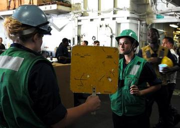 | Keywords: US Navy 100707-N-2908M-046 Boatswain's Mate 3rd Class Danielle Thorne gives training on proper signaling for a replenishment at sea to Boatswain's Mate Seaman Afton Patrick aboard USS Kearsarge (LHD 3).jpg en ATLANTIC OCEAN July 7 2010 Boatswain's Mate 3rd Class Danielle Thorne left gives training on proper signaling for a replenishment at sea to Boatswain's Mate Seaman Afton Patrick aboard the amphibious assault ship USS Kearsarge LHD 3 Kearsarge is a part of the Kearsarge Amphibious Ready Group participating in a composite unit training exercise COMPTUEX from Virginia to Florida U S Navy photo by Mass Communication Specialist 3rd Class Joshua Mann/Released 2010-07-07 100707-N-2908M-046 Navy http //www navy mil/view_image asp id 88383 U S Navy photo by Mass Communication Specialist 3rd Class Joshua Mann PD-USGov-Military-Navy Aboard USS Kearsarge LHD-3 |