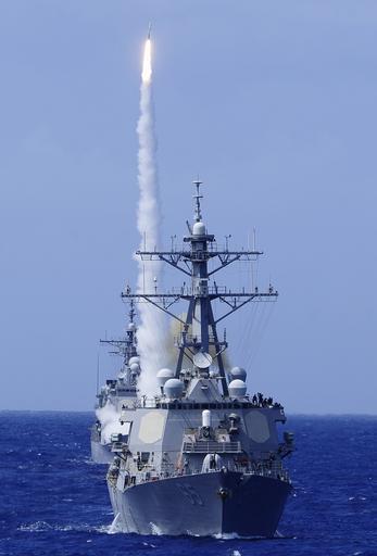 Keywords: US Navy 100711-N-7498L-450 USS Benfold (DDG 65) maneuvers ahead of USS Chosin (CG 65) as it fires a surface-to-air missile off the coast of Hawaii during Rim of the Pacific (RIMPAC) 2010 exercises.jpg en PACIFIC OCEAN July 11 2010 The guided-missile destroyer USS Benfold DDG 65 maneuvers ahead of the guided-missile cruiser USS Chosin CG 65 as it fires a surface-to-air missile off the coast of Hawaii during Rim of the Pacific RIMPAC 2010 exercises RIMPAC is a biennial multinational exercise designed to strengthen regional partnerships and improve multinational interoperability U S Navy photo by Mass Communication Specialist 2nd Class Mark Logico/Released 2010-07-11 100711-N-7498L-450 Navy http //www navy mil/view_image asp id 88665 U S Navy photo by Mass Communication Specialist 2nd Class Mark Logico PD-USGov-Military-Navy USS Benfold DDG-65 Launches of RIM-66 Standard MR missiles |