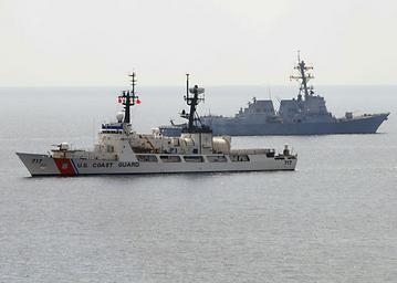 | Keywords: US Navy 100712-N-3446M-176 Ships conduct gunfire exercise during CARAT 2010.jpg en SOUTH CHINA SEA July 12 2010 The Arleigh Burke-class guided-missile destroyer USS Chung-Hoon DDG 93 and U S Coast Guard cutter Mellon WHEC 717 pass each other during a surface gunfire exercise Chung-Hoon Mellon and other U S and Republic of Singapore Navy ships are participating in Cooperation Afloat Readiness and Training CARAT Singapore 2010 CARAT is a series of bilateral exercises held annually in Southeast Asia to strengthen relationships and enhance force readiness U S Navy photo by Mass Communication Specialist 1st Class Kim McLendon/Released 2010-07-12 100712-N-3446M-176 Navy http //www navy mil/view_image asp id 88623 U S Navy photo by Mass Communication Specialist 1st Class Kim McLendon PD-USGov-Military-Navy USS Chung-Hoon DDG-93 Cooperation Afloat Readiness and Training 2010 USCGC Mellon WHEC-717 |