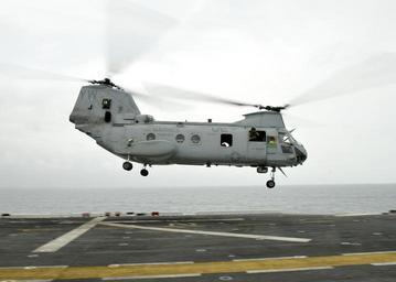 | Keywords: US Navy 100813-N-1226D-066 A CH-46 Sea Knight helicopter launches from USS Peleliu (LHA 5).jpg en ARABIAN SEA Aug 13 2010 A CH-46 Sea Knight helicopter assigned to Helicopter Marine Medium Squadron HMM 165 Reinforced launches from the amphibious assault ship USS Peleliu LHA 5 The Peleliu Amphibious Ready Group is supporting the Pakistani government and military disaster relief efforts with heavy lift capabilities in flooded regions of Pakistan U S Navy photo by Mass Communication Specialist 3rd Class Omar A Dominquez/Released 2010-08-13 100813-N-1226D-066 Navy http //www navy mil/view_image asp id 90255 U S Navy photo by Mass Communication Specialist 3rd Class Omar A Dominquez PD-USGov-Military-Navy Aboard USS Peleliu LHA-5 2010 Pakistan flood relief efforts Helicopters facing right CH-46 Sea Knight |