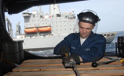 | Keywords: US Navy 100819-N-6582H-088 Logistics Specialist Seaman Travis Plank bands empty pallets together aboard USS Harry S. Truman (CVN 75) during a replenishment at sea.jpg en ARABIAN SEA Aug 19 2010 Logistics Specialist Seaman Travis Plank from Ida Mich bands empty pallets together aboard the aircraft carrier USS Harry S Truman CVN 75 during a replenishment at sea with the Military Sealift Command dry cargo and ammunition ship USNS Sacagawea T-AKE 2 Harry S Truman is deployed as part of the Harry S Truman Carrier Strike Group supporting maritime security operations and theater security cooperation efforts in the U S 5th Fleet area of responsibility U S Navy photo by Mass Communication Specialist 3rd Class Jared Hall/Released 2010-08-19 100819-N-6582H-088 Navy http //www navy mil/view_image asp id 90724 U S Navy photo by Mass Communication Specialist 3rd Class Jared Hall PD-USGov-Military-Navy Aboard USS Harry S Truman CVN-75 |