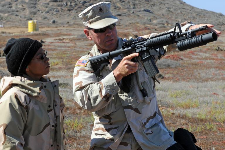 | Keywords: US Navy 100820-N-9123L-133 U.S. Coast Guard Chief Maritime Enforcement Specialist Thomas Morgan, assigned to Port Security Unit 311, instructs Engineman 2nd Class Manuela Adame on operating the M203 grenade launcher.jpg en SAN CLEMENTE ISLAND Ca Aug 20 2010 U S Coast Guard Chief Maritime Enforcement Specialist Thomas Morgan assigned to Port Security Unit 311 instructs Engineman 2nd Class Manuela Adame on operating the M203 grenade launcher during a live-fire exercise at the Maritime Expeditionary Security Squadron MSRON 1 inaugural training school Shark Tank 2010 Shark Tank is a new series of training exercises designed to hone and teach expeditionary warfare skills U S Navy photo by Mass Communication Specialist 2nd Class Byron C Linder/Released 2010-08-20 100820-N-9123L-133 Navy http //www navy mil/view_image asp id 90637 U S Navy photo by Mass Communication Specialist 2nd Class Byron C Linder PD-USGov-Military-Navy M4 carbine with M203 Males with M203 Maritime Expeditionary Security Squadrons San Clemente Island |