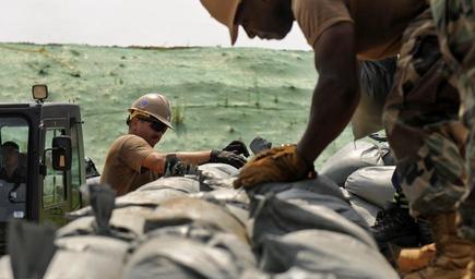 | Keywords: US Navy 100824-N-7280V-362 Equipment Operator 2nd Class Christopher Dain arranges sand bags during a training exercise.jpg en BUSAN Republic of Korea Aug 24 2010 Equipment Operator 2nd Class Christopher Dain crew leader of Sailors assigned to Naval Mobile Construction Battalion NMCB 11 deployed to Commander Fleet Activities Chinhae arranges sand bags during a training exercise Republic of Korea navy and NMCB-11 Sailors are working together to construct a heavy timber bunker above ground during a training exercise in Busan U S Navy photo by Mass Communication Specialist 2nd Class Daniel Viramontes/Released 100824-N-7280V-362 Navy http //www navy mil/view_image asp id 90789 U S Navy photo by Mass Communication Specialist 2nd Class Daniel Viramontes PD-USGov-Military-Navy Sandbags Images from US Navy location BUSAN Korea Naval Mobile Construction Battalion 11 Military exercises |