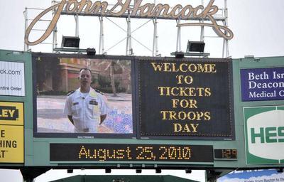 | Keywords: US Navy 100825-N-0413R-120 Cmdr. Matt Graham, stationed in Bahrain, sends his family greetings on the JumboTron during a Boston Red Sox baseball game at Fenway Park.jpg en BOSTON Mass Aug 25 2010 Cmdr Matt Graham stationed in Bahrain sends his family greetings on the JumboTron during a Boston Red Sox baseball game at Fenway Park Graham has been separated from his family for 14 months The Red Sox organization showed appreciation to the men and women of the U S armed forces during pregame ceremonies as part of the Tickets for Troops program U S Navy photo by Mass Communication Specialist 2nd Class Shannon Renfroe/Released 2010-08-25 100825-N-0413R-120 Navy http //www navy mil/view_image asp id 90803 U S Navy photo by Mass Communication Specialist 2nd Class Shannon Renfroe PD-USGov-Military-Navy Images from US Navy location BOSTON Fenway Park |