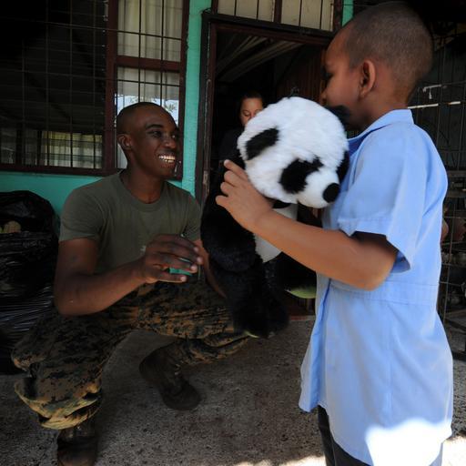 | Keywords: US Navy 100825-N-4153W-302 Lance Cpl. Joseph Robertson gives a Costa Rican boy a stuffed animal during a community service event.jpg en LIMON Costa Rica Aug 25 2010 Lance Cpl Joseph Robertson assigned to the Marine Logistics Command Element embarked aboard the multi-purpose amphibious assault ship USS Iwo Jima LHD 7 gives a Costa Rican boy a stuffed animal during a Continuing Promise 2010 community service event The assigned medical and engineering staff embarked aboard Iwo Jima are working with partner nation teams to provide medical dental veterinary and engineering assistance in eight nations U S Navy photo by Mass Communication Specialist 2nd Class Bryan Weyers/Released 2010-08-25 100825-N-4153W-302 Navy http //www navy mil/view_image asp id 90892 U S Navy photo by Mass Communication Specialist 2nd Class Bryan Weyers PD-USGov-Military-Navy Aboard USS Iwo Jima LHD-7 |