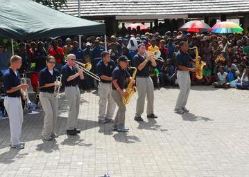 | Keywords: US Navy 100904-N-4044H-225 The U.S. Pacific Fleet Band performs in the town's local market. The band is embarked aboard the Royal Australian Navy landing ship heavy HMAS Tobruk (L50).jpg en KOKOPO Papua New Guinea Sept 4 2010 The U S Pacific Fleet Band performs in the town's local market The band is embarked aboard the Royal Australian Navy landing ship heavy HMAS Tobruk L50 A contingent of 64 Sailors and non-governmental organization members assigned to the Military Sealift Command hospital ship USNS Mercy T-AH 19 are embarked aboard Tobruk conducting the final leg of Pacific Partnership 2010 Pacific Partnership is the fifth in a series of annual U S Pacific Fleet humanitarian and civic assistance endeavors aimed to strengthen regional partnerships U S Navy photo by Mass Communication Specialist 2nd Class Eddie Harrison/Released 2010-09-04 100904-N-4044H-225 Navy http //www navy mil/view_image asp id 91306 U S Navy photo by Mass Communication Specialist 2nd Class Eddie Harrison PD-USGov-Military-Navy Aboard USNS Mercy T-AH-19 |
