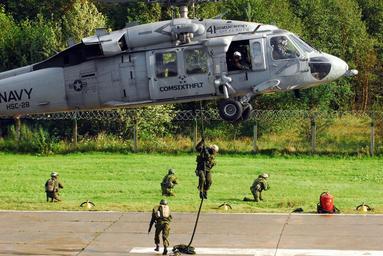 | Keywords: US Navy 100917-A-0629C-046 Special operations forces soldiers from Lithuania, Poland, and the U.S. conduct fast rope training from a U.S. Navy MH-6.jpg en KLAIPEDA Lithuania Sept 17 2010 Special operations forces soldiers from Lithuania Poland and the U S conduct fast rope training from a U S Navy MH-60 Sea Hawk helicopter before the start of the Jackal Stone 10 exercise Jackal Stone 10 hosted by Poland and Lithuania is an annual international special operations forces exercise in Europe designed to enhance capabilities and interoperability among participating special operations forces U S Army photo by Pfc Christopher A Calvert/Released 2010-09-17 100917-A-0629C-046 Navy http //www navy mil/view_image asp id 92993 U S Army photo by Pfc Christopher A Calvert PD-USGov-Military-Navy Jackal Stone 2010 Events in KlaipÄ—da MH-60S Seahawk Lithuanian Special Operations Force |