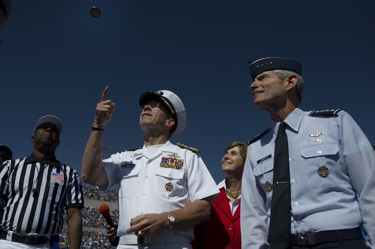 | Keywords: US Navy 101002-N-0696M-194 Chairman of the Joint Chiefs of Staff Adm. Mike Mullen, his wife, Deborah Mullen, and Gen. Norton A. Schwartz participat.jpg en COLORADO SPRINGS Colo Oct 2 2010 Chairman of the Joint Chiefs of Staff Adm Mike Mullen left his wife Deborah Mullen and Gen Norton A Schwartz chief of staff U S Air Force participate in the coin toss at Falcon Stadium prior to kickoff of the U S Air Force Academy Falcons versus the U S Naval Academy Midshipmen football game in Colorado Springs Colo The Falcons defeated the Midshipmen 14-6 U S Navy photo by Mass Communication Specialist 1st Class Chad J McNeeley/Released 2010-10-02 101002-N-0696M-194 Navy http //www navy mil/view_image asp id 92416 U S Navy photo by Mass Communication Specialist 1st Class Chad J McNeeley PD-USGov-Military-Navy Images from US Navy location COLORADO SPRINGS Colo Michael G Mullen in 2010 |