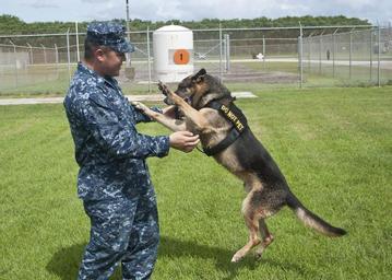 | Keywords: US Navy 101006-N-5539C-004 Master-at-Arms 3rd Class Daniel Padilla and Master-at-Arms 2nd Class Brit E295.jpg en SANTA RITA Guam Oct 6 2010 Master-at-Arms 3rd Class Daniel Padilla and Master-at-Arms 2nd Class Brit E295 a German Shepherd explosive-detecting canine practice their obedience commands Padilla and Brit are assigned to the Military Working Dog Unit of U S Naval Security Forces Guam at U S Naval Base Guam U S Navy photo by Mass Communication Specialist 2nd Class Corwin Colbert/Released 2010-10-06 101006-N-5539C-004 Navy http //www navy mil/view_image asp id 92903 U S Navy photo by Mass Communication Specialist 2nd Class Corwin Colbert PD-USGov-Military-Navy Naval Base Guam Master-at-arms Military working dogs of the United States |