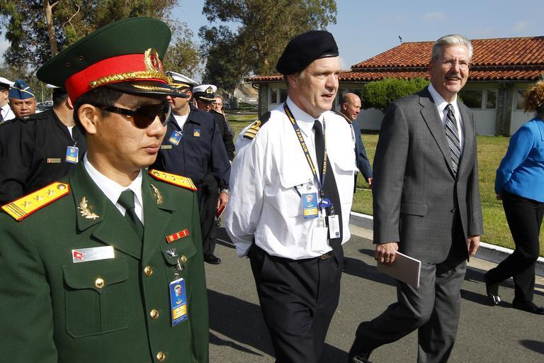 | Keywords: US Navy 101026-N-8863V-033 Nineteen foreign naval attaches toured NSWC Corona, the Navy's newest federal lab.jpg en NORCO Calif Oct 26 2010 Dr William Luebke right technical director of Naval Surface Warfare Center NSWC Corona Division walks with Vietnam People's Army Col Hien Dinh Luu left and Netherlands Navy Cmdr Martin Noordzij as they arrive for tour at NSWC Corona Nineteen foreign naval attaches toured NSWC Corona the Navy's newest federal lab U S Navy photo by Greg Vojtko/Released 2010-10-26 101026-N-8863V-033 Navy http //www navy mil/view_image asp id 93446 U S Navy photo by Greg Vojtko PD-USGov-Military-Navy Images from US Navy location NORCO Calif Naval Surface Warfare Center Corona Division |