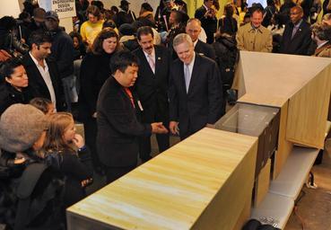 | Keywords: US Navy 101104-N-7676W-123 Secretary of the Navy Ray Mabus visits a new community learning center in New York.jpg en NEW YORK Nov 4 2010 Darryl Hwang center-left with the nonprofit educational organization Iridescent explains a wind tunnel exhibit to the Secretary of the Navy Ray Mabus center-right and U S Congressman Jose Serrano center during the opening of a new community learning and discovery center The center is co-sponsored by the Office of Naval Research ONR and Iridescent located in the Hunts Point section of the Bronx N Y Increasing the science technology engineering and mathematics or STEM educational pipeline is a priority for the Navy and ONR The festival included interactive exhibits science experiments and design challenges for families U S Navy photo by John F Williams/Released 2010-11-04 101104-N-7676W-123 Navy http //www navy mil/view_image asp id 93662 U S Navy photo by John F Williams PD-USGov-Military-Navy United States Navy images from New York Ray Mabus |
