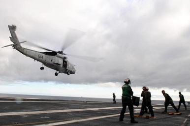 | Keywords: US Navy 101107-N-0232G-084 An SH-60F Sea Hawk helicopter assigned to the Black Knights of Helicopter Anti-Submarine Squadron (HS) 4 lifts off from.jpg en PACIFIC OCEAN Nov 7 2010 An SH-60F Sea Hawk helicopter assigned to the Black Knights of Helicopter Anti-Submarine Squadron HS 4 lifts off from the aircraft carrier USS Ronald Reagan CVN 76 to provide aerial support during an opposed replenishment at sea The replenishment was part of a composite training unit exercise in preparation for an upcoming deployment U S Navy photo by Mass Communication Specialist 3rd Class Kevin B Gray/Released 2010-11-07 101107-N-0232G-084 Navy http //www navy mil/view_image asp id 93837 U S Navy photo by Mass Communication Specialist 3rd Class Kevin B Gray PD-USGov-Military-Navy Helicopters at USS Ronald Reagan CVN-76 Flight deck of USS Ronald Reagan CVN-76 SH-60F Oceanhawk |
