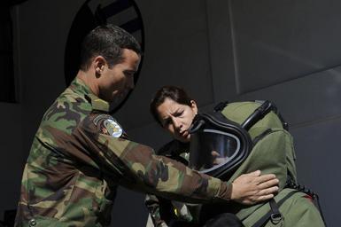 | Keywords: US Navy 101112-N-8546L-344 Uruguayan explosive ordnance disposal technicians help a fellow soldier don a bomb disposal suit.jpg en MONTEVIDEO Uruguay Nov 12 2010 Uruguayan explosive ordnance disposal technicians help a fellow soldier don a bomb disposal suit during a three-week training course coordinated by the Maritime Civil Affairs and Security Training Command MCAST MCAST delivers teams of highly skilled U S Navy Sailors to share expertise with partner nations to strengthen international relationships U S Navy photo by Mass Communication Specialist 1st Class Peter D Lawlor/Released 2010-11-12 101112-N-8546L-344 Navy http //www navy mil/view_image asp id 94667 U S Navy photo by Mass Communication Specialist 1st Class Peter D Lawlor PD-USGov-Military-Navy United States Navy in Montevideo Uruguay Bomb suits |