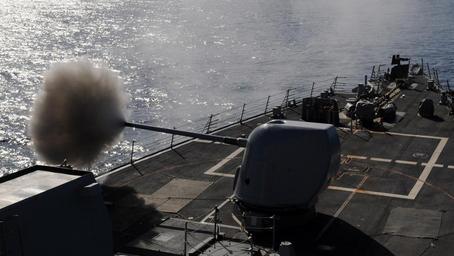 | Keywords: US Navy 101116-N-3666S-096 The guided-missile destroyer USS Russell (DDG 59) fires its 5-inch-54 caliber Mark 45 lightweight gun.jpg en PACIFIC OCEAN Nov 16 2010 The guided-missile destroyer USS Russell DDG 59 fires its 5-inch/54 caliber Mark 45 lightweight gun during exercise Koa Kai off the coast of the Hawaiian Islands Koa Kai is the primary integrated training event for Mid-Pacific surface combatant units designed to achieve deployment certifications and training U S Navy photo by Mass Communication 2nd Class Robert Stirrup/Released 2010-11-16 101116-N-3666S-096 Navy http //www navy mil/view_image asp id 94312 U S Navy photo by Mass Communication 2nd Class Robert Stirrup PD-USGov-Military-Navy 5 /54 caliber Mark 45 gun firing Aboard USS Russell DDG-59 |