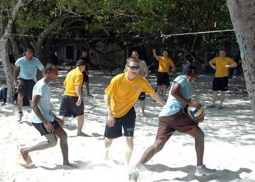 | Keywords: US Navy 101121-N-9061V-081 Sailors assigned to the guided-missile destroyer USS Momsen (DDG 92) join Maldivian coast guardsmen for a game of volley.jpg en VILLINGELLI ISLAND Maldives Nov 21 2010 Sailors assigned to the guided-missile destroyer USS Momsen DDG 92 join Maldivian coast guardsmen for a game of volleyball The Government of the Maldives invited the U S Navy to work with the Maldives coast guard to improve maritime domain awareness capabilities within the island nation's exclusive economic zone U S Navy photo by Electrician's Mate Fireman Jeanneth Vela/Released 2010-11-21 101121-N-9061V-081 Navy http //www navy mil/view_image asp id 94395 U S Navy photo by Electrician's Mate Fireman Jeanneth Vela PD-USGov-Military-Navy USS Momsen DDG-92 |