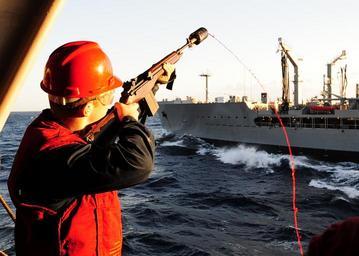 | Keywords: US Navy 101127-N-0939H-077 Airman Sean Nugent shoots a shot-line to the Military Sealift Command's Fleet Replenishment Oiler USNS Tippecanoe (T-AO.jpg en West of the Korean Peninsula Nov 27 2010 Airman Sean Nugent shoots a shot-line to the Military Sealift Command's Fleet Replenishment Oiler USNS Tippecanoe T-AO 199 as it pulls alongside USS George Washington CVN 73 during a replenishment at sea George Washington is in the waters west of the Korean peninsula in preparation of a training exercise with the Republic of Korea ROK Navy This exercise reinforces U S commitment to the ROK regional partners and to freedom of movement throughout the western Pacific U S Navy photo by Mass Communication Specialist Seaman Apprentice Alysia Hernandez/Released 2010-11-27 101127-N-0939H-077 Navy http //www navy mil/view_image asp id 94544 U S Navy photo by Mass Communication Specialist Seaman Apprentice Alysia Hernandez PD-USGov-Military-Navy USNS Tippecanoe T-AO-199 M14 rifle fireing shot line |