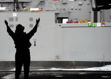 | Keywords: US Navy 101202-N-0939H-327 Boatswain's Mate 2nd Class Justin Brewer, from Tulsa, Okla., signals from the aircraft carrier USS George Washington (C.jpg en WATERS WEST OF KOREAN PENINSULA Dec 2 2010 Boatswain's Mate 2nd Class Justin Brewer from Tulsa Okla signals from the aircraft carrier USS George Washington CVN 73 to the Military Sealift Command dry cargo and ammunition ship USS Carl Brashear T-AKE 7 during a replenishment at sea George Washington recently completed a training exercise with the Republic of Korea Navy U S Navy photo by Mass Communication Seaman Apprentice Alysia R Hernandez/Released 2010-12-02 101202-N-0939H-327 Navy http //www navy mil/view_image asp id 94722 U S Navy photo by Mass Communication Seaman Apprentice Alysia R Hernandez PD-USGov-Military-Navy Aboard USS George Washington CVN-73 |