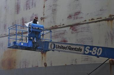 | Keywords: US Navy 101221-N-9643K-452 A NASSCO shipyard worker uses a lift to continue working on the hull of the amphibious assault ship USS Bonhomme Richar.jpg en SAN DIEGO Dec 21 2010 A NASSCO shipyard worker uses a lift to continue working on the hull of the amphibious assault ship USS Bonhomme Richard LHD 6 despite constant rain for several days Areas of California are under a state of emergency because of severe rains and flooding Bonhomme Richard is in dry dock for maintenance and upgrades U S Navy photo by Chief Mass Communication Specialist Joe Kane/Released 2010-12-21 101221-N-9643K-452 Navy http //www navy mil/view_image asp id 95720 U S Navy photo by Chief Mass Communication Specialist Joe Kane PD-USGov-Military-Navy Aboard USS Bonhomme Richard LHD-6 NASSCO floating dry dock Cherry pickers in the United States Photographs by Joseph Kane |